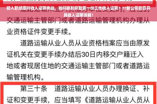 摘要:初入职场的你,面对第一份工作的收入证明挑战时,不必过于担心。新公司是可以为你开具收入证明的。了解收入证明的重要性和作用,提前与雇主沟通,确保证明内容的准确性。结合自身实际情况,理性看待收入证明,为未来职业发展打好基础。