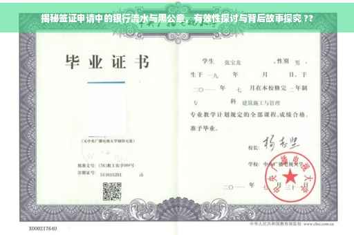 摘要:关于签证申请中的银行流水与黑公章问题备受关注。银行流水作为证明个人经济能力的材料,在签证申请中占据重要地位。而黑公章则涉及到一些争议和疑问。本文旨在揭示背后的故事,探讨签证银行流水黑公章是否有效,为读者提供相关信息和参考。