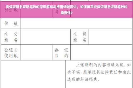 随着社会信用体系建设的推进,资信证明书在日常生活和经济活动中扮演着日益重要的角色,证明笔数作为衡量企业或个人信用状况的关键指标,不仅反映了信用活动的频繁程度,更是评估偿债能力、信贷审批、商业合作及招投标等领域的重要依据。