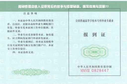 随着社会的快速发展,汽车已成为人们日常生活中不可或缺的交通工具,随之而来的汽车修理行业也日益繁荣,越来越多的人选择投身于这个行业,本文将深入探讨修理店收入证明的重要性、背后的故事以及经营之道,通过了解这些方面的内容,我们不仅可以更好地理解这个行业,还能为想要从事这一行业的人提供一些启示。