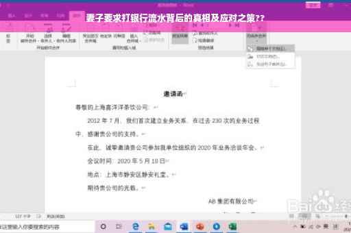 近年来,随着社会的快速发展,越来越多的人开始重视个人财务管理,在这个过程中,银行流水作为重要的财务记录之一,逐渐受到广泛关注,当妻子提出要查看丈夫或家庭的银行流水时,背后可能隐藏着多种原因,本文将探讨妻子要打银行流水的背后可能存在的真相,并为大家提供应对之策。