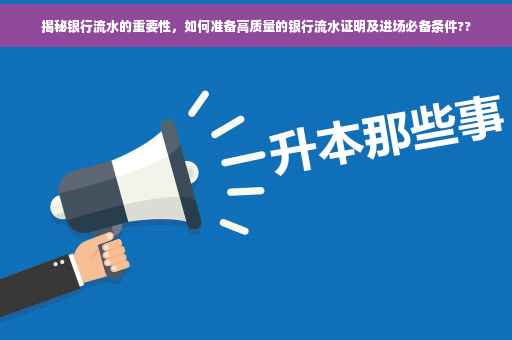摘要:银行流水在日常生活和工作中具有重要意义,尤其在需要证明自身经济实力时。准备高质量的银行流水证明需要保持稳定的资金流动,定期存款和理财,确保流水记录真实有效。若进场需提供银行流水,应提前整理并筛选合适的时间段和交易记录。了解银行流水的重要性并掌握准备方法,有助于个人或企业在关键时刻顺利过关。