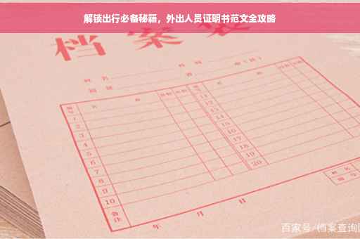 摘要:外出人员证明书是出行必备的秘籍,对于需要外出工作或旅游的人来说尤为重要。本文将介绍如何撰写外出人员证明书范文,包括证明书的格式、内容、注意事项等。通过本文的指导,读者可以轻松地了解如何撰写一份规范、有效的外出人员证明书,以便顺利出行。