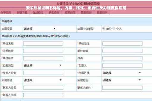 摘要:本文将详细介绍安装质量证明书的内容、格式和重要性。通过了解安装质量证明书,可以更好地了解如何办理相关手续。本文将指导读者了解安装质量证明书的重要性,包括其对于工程质量和安全的作用。还将介绍证明书的详细内容以及格式要求,帮助读者更好地完成安装质量证明书的办理工作。