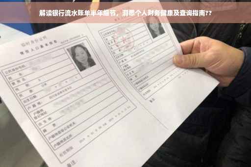 随着个人财务管理的日益重要,银行流水账单成为我们了解自身财务状况的关键工具,一份详尽的银行流水账单不仅反映了我们的收支情况,还能深度揭示我们的消费习惯和生活方式,本文将详细解读半年内的银行流水账单细节,帮助大家更好地掌握个人财务状况。