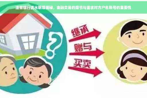 摘要:本文将介绍法签银行流水明细的重要性及其作用,揭示金融交易的神秘面纱。在法签银行流水明细的过程中,需要获取对方户名和账号信息以确保准确性和安全性。通过了解银行流水明细,可以更好地掌握个人或企业的财务状况,为金融决策提供参考依据。本文旨在帮助读者更好地理解和应用法签银行流水明细,促进金融交易的透明化和规范化。