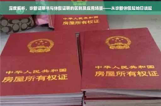 摘要:本文将深度解析诊断证明书与休假证明的区别及应用场景,阐述两者在医疗证明中的不同作用。诊断证明书主要用于证明患者病情及诊断结果,而休假证明则用于证明患者因疾病需要休息的时间。本文将探讨诊断证明中休假起始日期的计算方式,以帮助读者更好地理解和使用这两种证明。