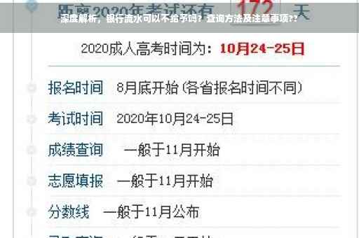 摘要:本文深度解析了银行流水是否可以不给以及查询方法。文章指出,在某些情况下,个人无需提供银行流水,但在贷款等金融交易中通常需要提供。关于查询银行流水的方法,可以通过网上银行、手机银行或柜台查询等方式获取。文章详细阐述了这些过程,帮助读者更好地理解和处理银行流水相关事宜。
