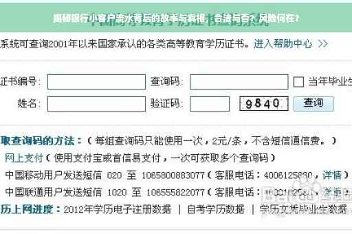 摘要:银行提供小客户流水信息引发关注,背后涉及的故事和真相引人深思。关于此举是否违法,需结合具体情况分析。本文旨在探讨银行流水信息的合法使用界限,揭示背后可能的法律风险及合规问题,以引导公众理性看待此现象。