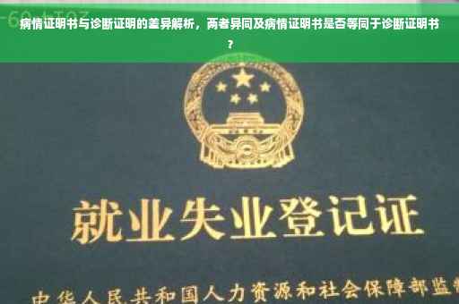 摘要:在现代医疗环境中,病情证明书与诊断证明是两种常见的医疗文书,它们之间既有联系又有差异,本文将详细解析这两种文件的关系及其差异,帮助大家更好地理解它们的作用和含义。