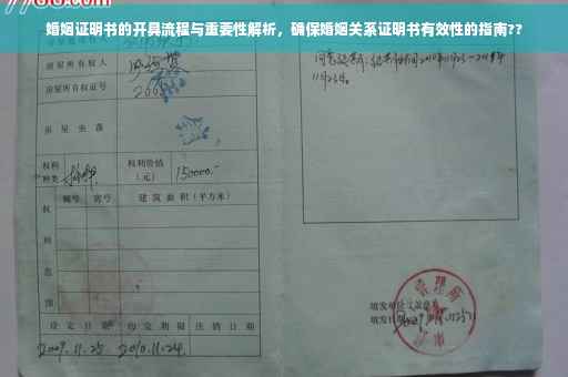 摘要:本文将详细介绍婚姻证明书的开具流程及其重要性。通过本文,您将了解如何证明婚姻关系证明书的有效性,包括婚姻证明书的定义、用途、开具流程、注意事项等。内容实用,对于需要开具婚姻证明书的读者具有重要的指导意义。阅读本文,您将更好地了解婚姻证明书的重要性并顺利开具。??