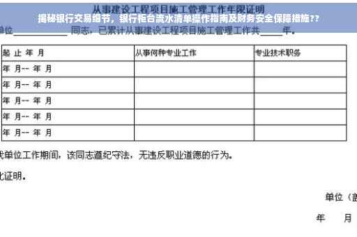 随着金融市场的不断发展和个人理财需求的日益增长,银行柜台流水清单作为记录个人银行账户交易的重要文件,其意义日益凸显,本文将详细介绍银行柜台流水清单的相关知识,帮助大家更好地了解自己的账户交易情况,保障个人财务安全、规避风险。