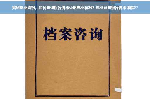 在当今社会,就业问题一直是人们关注的焦点,随着经济的发展和社会的进步,越来越多的人开始关注自己的就业状况,而在这个过程中,就业证明银行流水成为了衡量一个人就业状况的重要依据,本文将详细介绍就业证明银行流水的作用、获取方式及其重要性,帮助读者更好地了解这一话题。