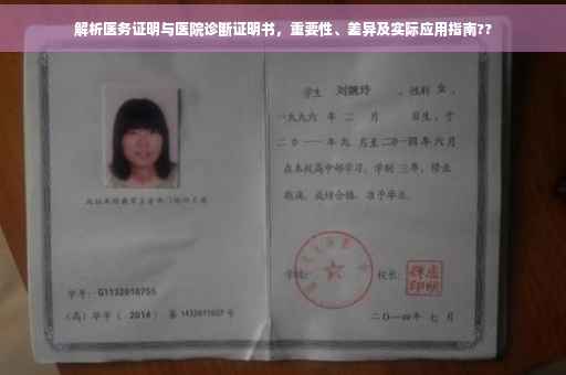 摘要:本文将深入探讨医务证明与医院诊断证明书的重要性及其实际应用。通过解析两者的含义与用途,阐明医务证明和医院诊断证明书并非同一概念,各自具有独特的作用。通过了解两者的差异,能更好地理解它们在医疗领域的重要性,为人们的健康保障提供有力支持。