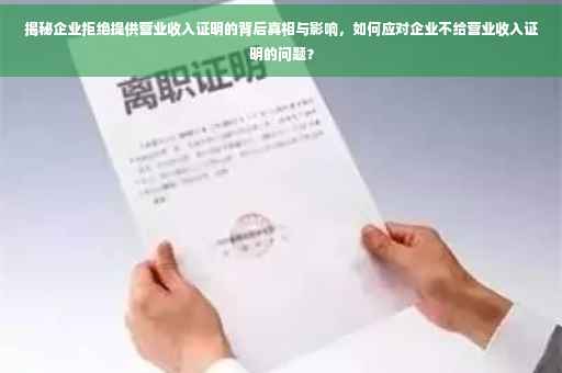 揭秘企业拒绝提供营业收入证明背后的真相与影响。文章指出,企业在某些情况下可能会拒绝提供营业收入证明,这背后可能隐藏着多种原因。文章同时探讨了这种情况对各方面可能产生的影响,以及应对企业不给营业收入证明的具体办法和措施。提醒公众关注这一问题,并寻求合理解决方案。