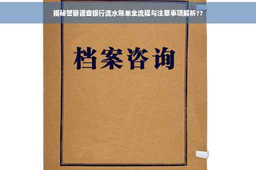 随着金融行业的迅速崛起,银行流水作为个人和企业经济活动的重要记录,逐渐引起了社会各界的广泛关注,在打击犯罪、维护社会治安的过程中,警察有时需要针对银行流水进行深入调查,本文将详细解析警察调查银行流水的流程,并为您介绍其中的注意事项,同时通过案例分析,带您了解整个过程。