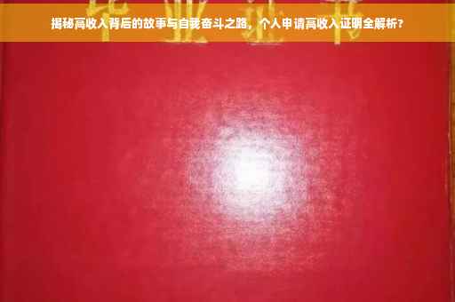 随着社会的快速发展,越来越多的人开始追求高收入,希望通过自己的努力与拼搏实现更好的生活品质,高收入并非易事,背后往往伴随着辛勤付出、专业技能以及不懈的努力,本文将围绕个人申请高收入证明这一主题展开,探讨如何迈向高收入行列,分享成功背后的故事与自我奋斗之路。