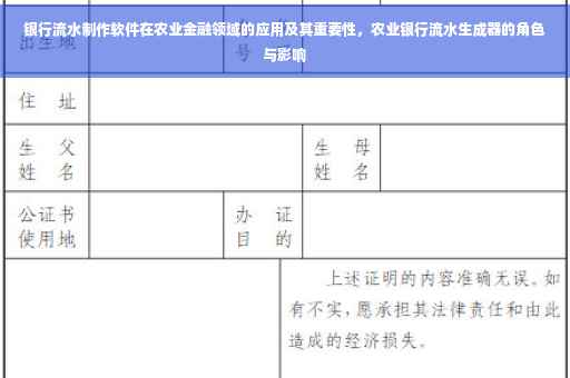 在农业信贷服务中,银行流水制作软件发挥着重要作用,农户和农业企业的资金往来记录、交易数据等都可以通过软件生成银行流水,这不仅方便了金融机构对农户和企业的信用评估,还提高了信贷审批的效率和准确性。