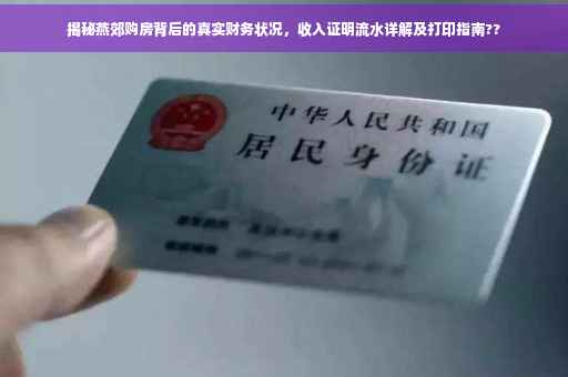 摘要:本文将介绍燕郊购房者的真实财务状况,包括收入证明和流水的重要性。本文将揭秘购房背后的经济现实,并解释如何打印燕郊买房收入证明和流水,帮助购房者了解购房过程中的财务要求,以便做出明智的决策。