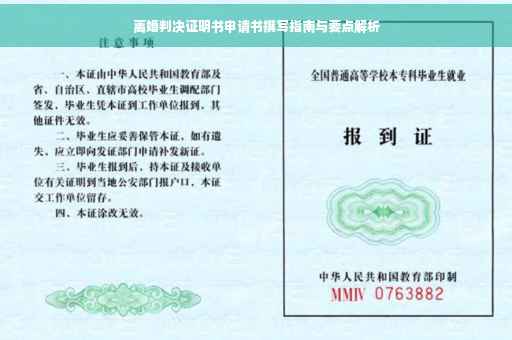 摘要:本指南旨在帮助申请人正确撰写离婚判决证明书申请书。内容包括离婚判决证明书的申请流程、所需材料、填写要点及注意事项等。通过本指南,申请人可以了解如何准确、全面地提交申请,以便顺利获得离婚判决证明书,确保自身权益得到合法保护。