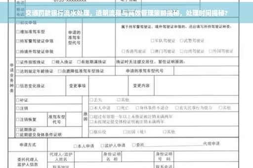 随着城市化进程的加快,交通问题日益突出,交通罚款作为交通管理的重要手段,其处理流程也备受关注,近年来,随着科技的发展,银行流水在交通罚款处理中的应用逐渐普及,本文将详细介绍处理交通罚款银行流水的重要性、流程、问题及优化策略,以期为公众带来更加便捷、高效的交通罚款处理体验。