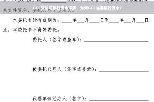 摘要:本文将详细介绍GEC交易与银行流水的关系,解释为何在进行GEC交易时需要提供银行流水。通过解析GEC交易流程,帮助读者理解银行流水在交易过程中的重要性,以确保交易的合法性和安全性。