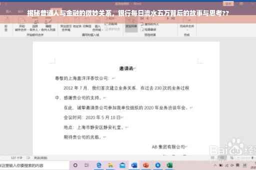 随着金融日益融入我们的日常生活,银行作为金融体系的核心组成部分,与我们每个人都息息相关,当我们谈论银行每日流水5万时,这不仅仅是数字背后的简单故事,这背后反映了什么样的经济状况?对于普通人来说,这5万的流水又意味着怎样的生活品质与财务状态?让我们一同探寻这一话题。