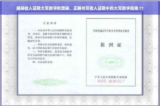 随着经济的繁荣和就业市场的活跃,收入证明已成为我们生活中不可或缺的一部分,无论是申请贷款、办理信用卡,还是租房、签证等,收入证明都是展示经济实力的重要文件,在这份证明中,我们常常能看到使用大写数字表示的金额,背后蕴含着怎样的奥秘呢?本文为您揭开收入证明中大写数字的秘密。