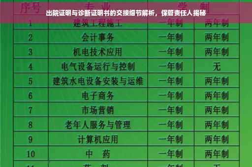 摘要:本文将探讨出院证明与诊断证明书的交接细节,解析这两份重要文件应交给谁保管。文章将简要介绍出院证明和诊断证明书的内容及其重要性,然后重点阐述交接过程中的注意事项和细节,包括接收方、保管责任、交接程序等。文章将总结整个交接过程的重要性,提醒相关人员严格遵守交接规定,确保患者资料的安全与完整。
