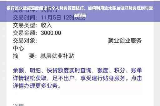 银行流水数据是个人财务管理的重要工具,通过深入分析银行流水数据,可以了解个人或企业的财务状况、收支结构、资金流动情况等,在此基础上,我们可以制定合适的财务策略,做好个人财务管理,希望本文能为你揭示银行流水数据的奥秘,并教你如何巧妙利用流水账单做好个人财务管理。