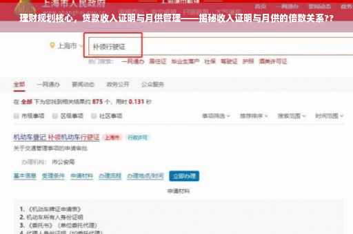 随着经济的发展和人民生活水平的提高,越来越多的人选择贷款购买房屋、车辆等大额消费品,在申请贷款的过程中,收入证明是非常重要的一环,本文将详细介绍贷款收入证明的概念、作用以及如何合理管理月供,帮助读者更好地规划个人财务。