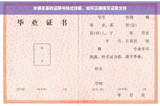 随着社会的不断发展,证明夫妻关系的证明书在我们的日常生活中扮演着至关重要的角色,无论是办理房产过户、申请贷款、出国旅行还是其他重要事务,一份合法且有效的夫妻关系证明书都是不可或缺的证明材料,本文将详细解读夫妻关系的证明书格式,帮助大家了解如何正确书写和准备这一重要文件。