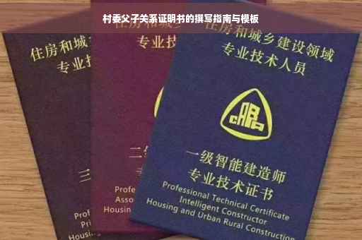 摘要:村委证明是父子关系的文件,通常需要写明双方姓名、身份证号、住址等基本信息,并明确说明双方之间的亲属关系。证明书应简洁明了,格式规范,语言清晰。撰写时需注意证明人的身份及职务,并加盖村委公章以确保证明效力。可参照提供的模板进行书写,确保证明书的真实性和有效性。此类证明常用于涉及财产继承、户口迁移等场合。