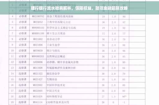 随着金融行业的快速发展,越来越多的人开始关注个人财务管理和资产安全,作为国有大型商业银行之一,建设银行(以下简称建行)的流水账单是许多人在办理贷款、信用卡及其他金融业务时的必备材料,如何验证建行银行流水的真实性,成为了许多人关注的焦点问题,本文将为您详细解析建行银行流水验真的方法,帮助您保障个人权益,避免金融陷阱。