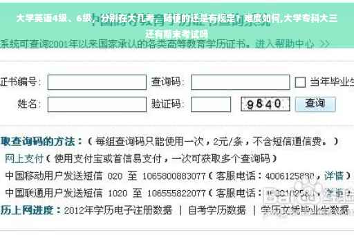 大学英语四六级一般的来讲,在本科院校大一就可以考了,在专科院校大一也可以参加考了。学校没有特别的规定。难度6级比4级更难一些。另外大学英语四六级是不限制考试次数的,如果你这次没考过,你下次还可以报名考试的。同时也提醒你,英语四六级要求的词汇量比较大,请你做好准备哦。