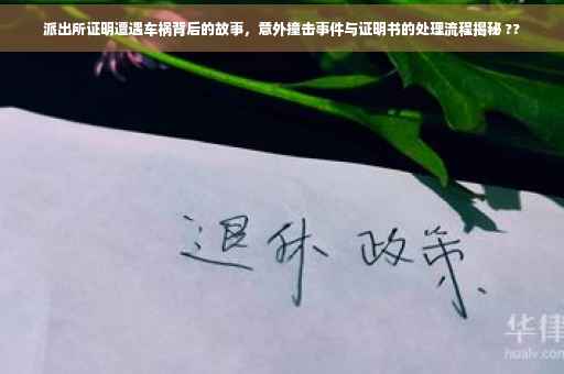 摘要:某派出所遭遇意外撞击事件,一份证明书的背后隐藏着复杂的故事。本文将探讨在此情况下,派出所如何出具车祸证明。面对挑战,派出所将如何确保证明的真实性和有效性,同时维护公正和公平,将是本文的重点内容。