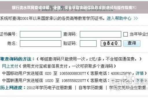 随着互联网技术的飞速发展,银行业作为金融体系的核心组成部分,正不断创新服务模式以提升服务质量,银行流水双网查询功能的推出,正是银行业积极响应数字化浪潮,满足广大客户金融需求的一大重要举措,本文将详细介绍银行流水双网查询的概念、操作流程、优势及注意事项,帮助广大读者更好地了解和运用这一便捷、安全的金融信息服务功能。