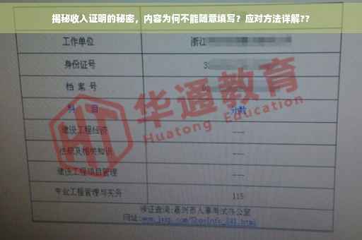 摘要:收入证明是证明个人经济能力的重要文件,但其背后隐藏着许多秘密。有时,某些机构或个人不允许填写具体内容,引发疑虑和困惑。面对这种情况,我们可以采取一些措施应对。了解不允许填写的具体原因,确保不违反相关规定。与雇主或相关部门沟通,寻求解决方案。保持警惕,避免陷入不必要的麻烦。面对收入证明中的秘密和限制,我们应理性应对,确保个人权益不受损害。