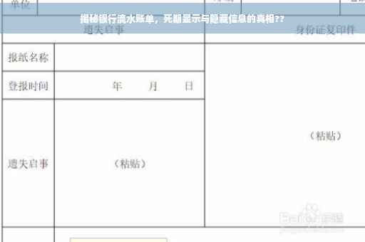 在现代社会,随着金融行业的快速发展,越来越多的人开始关注自己的财务状况,银行流水账单作为记录个人或企业资金往来的重要文件,其内容和细节备受关注,银行流水是否显示死期呢?本文将为您详细解析银行流水的相关内容,带您了解银行流水账单中的隐藏信息。