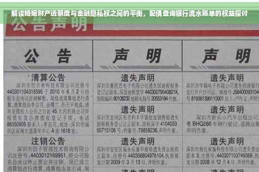 在婚姻这座桥梁上,财务透明度和信任是稳固其结构的坚强支柱,关于配偶是否可以查询银行流水的问题,犹如行走在钢丝绳上,既要考虑婚姻中的财产权益,又要尊重个人隐私权,我们就来探讨这个话题,解读如何在婚姻财产透明度与金融隐私权之间找到最佳的平衡点。