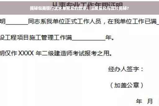 随着金融行业的快速发展,银行业务繁忙,其中银行流水单作为客户与银行交易的重要凭证,备受关注,包商银行作为一家具有影响力的金融机构,其流水单背后隐藏着怎样的故事?本文将为您揭开包商银行流水单的神秘面纱,带您了解背后的细节和故事。