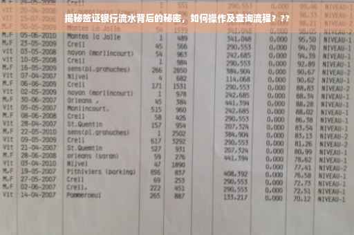 摘要:,,本文将揭示签证申请中银行流水背后的秘密,探讨如何找人办理签证银行流水及如何核查其真实性。文章指出,找代办机构时需谨慎选择可靠机构,同时提供核查方法,包括核对银行信息、流水内容真实性等。帮助读者了解签证银行流水的重要性及如何安全有效地处理相关问题。
