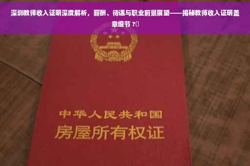 揭秘深圳教师收入证明,全面解析教师薪酬、待遇及职业前景。文章关注教师收入证明的具体内容,包括应盖章的印章种类。深圳教师的薪酬水平及福利待遇将进行详细探讨,同时关注其职业发展的广阔空间。