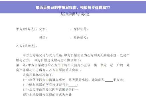 摘要:本指南旨在帮助撰写东西丢失证明书模板。当您遭遇物品遗失需要证明时,可依据本指南内容撰写证明书。本指南将介绍证明书中应包含的基本信息,如丢失物品名称、数量、丢失时间、地点及简要情况等。通过遵循本指南,您将能够清晰、准确地完成东西丢失证明书的撰写。