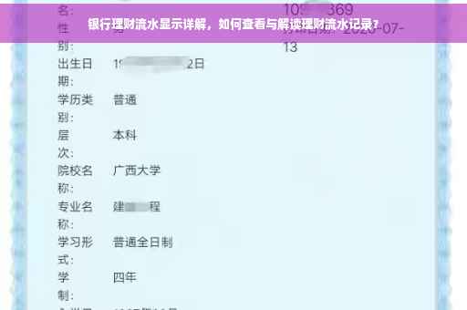 随着金融市场的繁荣与个人财富的积累,银行理财逐渐走入大众视野,成为投资者关注的热点,对于个人投资者而言,理解银行理财产品的运作机制、收益情况以及资金流向等核心要素至关重要,本文将重点介绍银行理财流水的展示方法、具体内容及其对个人投资者的深远意义。