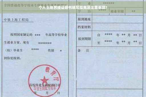 摘要:个人土地界线证明书是关于个人土地权属界限的重要文件。填写时,应清晰标注土地的位置、面积、边界等详细信息,并由相关土地管理部门出具证明。证明书需准确描述土地的界限,确保个人权益不受侵犯。在填写过程中,务必遵循土地管理部门的指导,确保证明书的真实性和有效性。