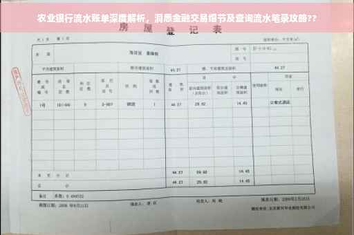 在当今金融行业的快速发展中,越来越多的人开始关注自己的财务状况,农业银行作为国有大型商业银行之一,为广大客户提供了便捷的服务,流水账单作为记录个人或企业金融交易的重要文件,备受瞩目,本文将全面介绍农业银行流水账单的内容,帮助您洞悉金融交易细节。