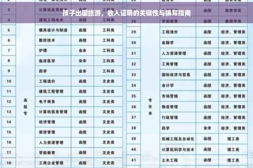 随着全球化的发展,越来越多的家庭选择让孩子走出国门,体验不同的文化和风景,出国旅游不仅能让孩子开阔视野,增长见识,还能锻炼他们的独立能力和跨文化交流技巧,在孩子出国旅游的过程中,收入证明成为了不可或缺的一部分,本文将详细解析孩子出国旅游收入证明的重要性、准备要点以及常见问题解决方案。