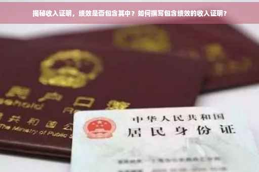 摘要:本文将探讨收入证明中的绩效问题,阐述绩效在收入证明中的地位和作用。文章指出,收入证明中是否包含绩效需视具体情况而定,并介绍如何正确书写收入证明。通过阅读本文,读者可以了解如何获取真实的收入证明,并明确绩效在其中的具体表现。