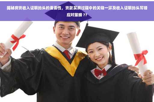 摘要:本文将介绍贷款买房过程中的关键一环——房贷收入证明抬头的重要性及其注意事项。文章指出,房贷收入证明抬头写错可能会影响到贷款审批结果,因此借款人需仔细核对并准确填写相关信息。本文旨在帮助读者了解房贷收入证明抬头的作用和正确填写方式,确保贷款买房过程顺利进行。